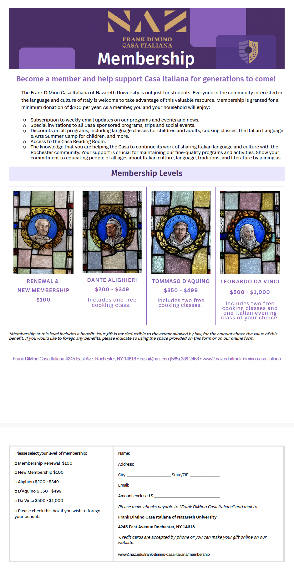- The knowledge that you are helping the Casa to continue its work of sharing Italian language and culture with the Rochester community. Your support is crucial for maintaining our fine-quality programs and activities. Show your commitment to educating people of all ages about Italian culture, language, traditions, and literature by joining us.