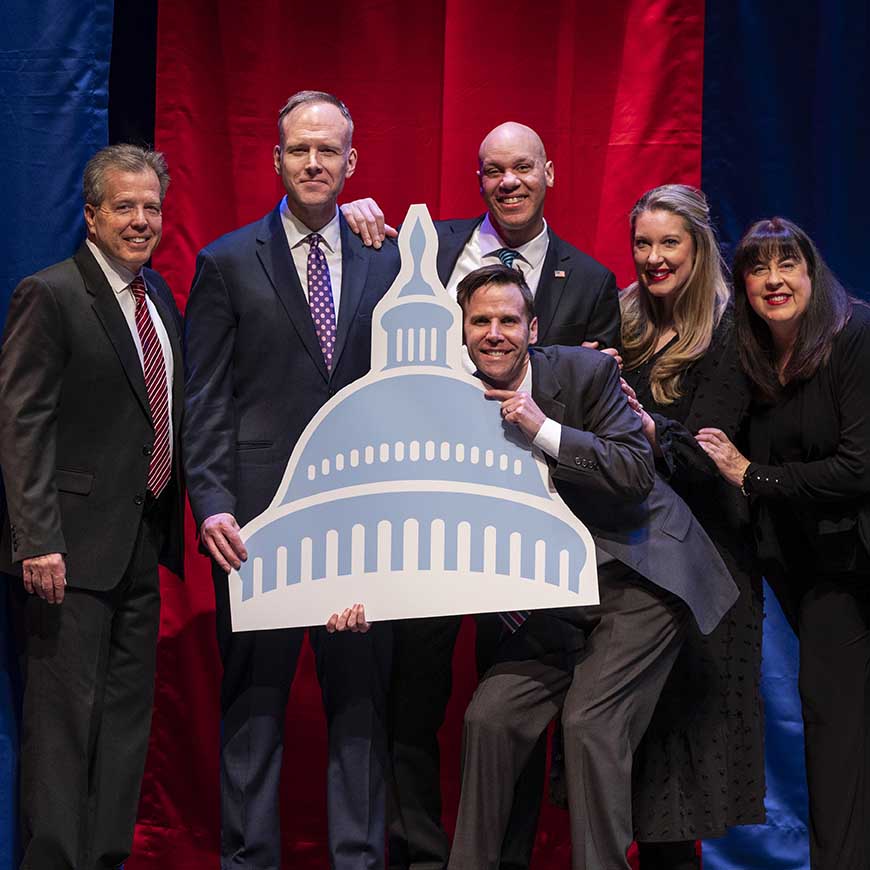 The Capitol Fools hold up a mirror to the country's political and social culture, providing hilarious song parodies and foolish reflections that inspire belly laughter. Audiences will see former members of the Capitol Steps performing their beloved sketches, breakneck costume changes, over-the-top impressions, and all-new song parodies reflecting the day's news.