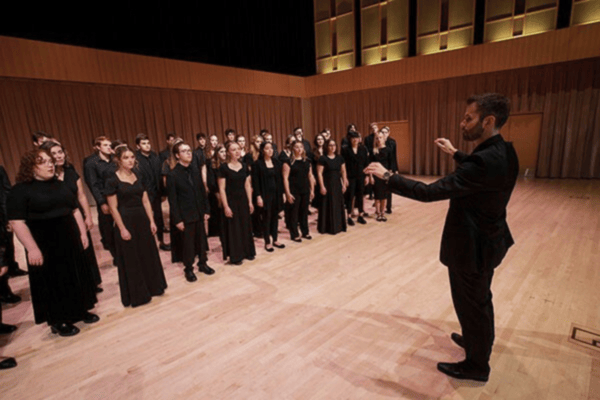 The Nazareth University Chorale, open to all majors and community members, performs a diverse repertoire for mixed voices (SATB), under the direction of Sarah Staebell.